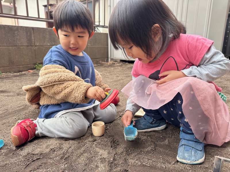 お庭では”虫探し”をしたり”だるまさんが転んだ”を大きい子たちと一緒に楽しみました♪