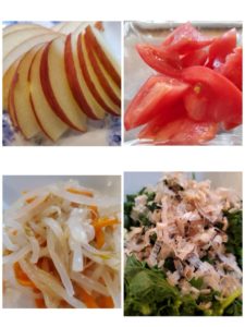 ☆りんご☆トマト☆人参ともやしのナムル☆のらぼうのお浸し