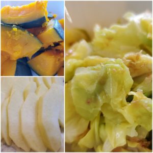☆キャベツのおかか和え☆蒸かし南瓜☆りんご