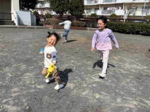 今日はクローバー公園に行ってきました。新しく仲間に加わったお友達も大きい子たちに手を繋いでもらいながら、初めてのお散歩を楽しんでいました♪