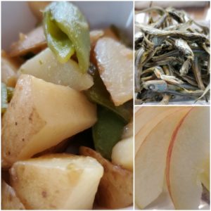 ☆新じゃが芋とスナップエンドウのソテー☆小魚☆りんご