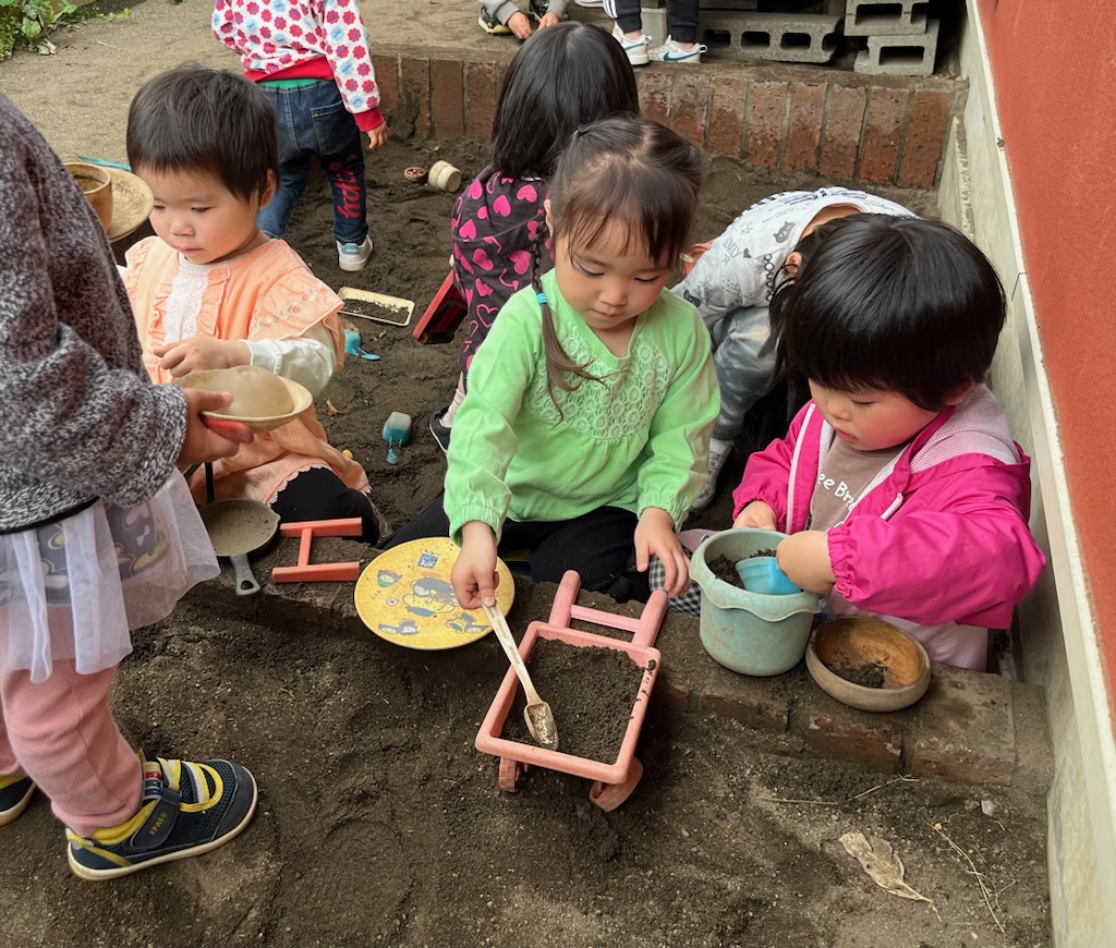 砂場では「いらっしゃいませ~」とアイス作りが始まり、アイスやケーキを沢山作ってくれました✨