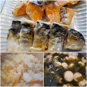 ☆筍ご飯☆お麩とわかめの澄まし汁☆焼き魚(鯖・鮭)