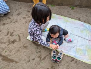 のんびりシートに座って楽しんでいた子ども達です😊