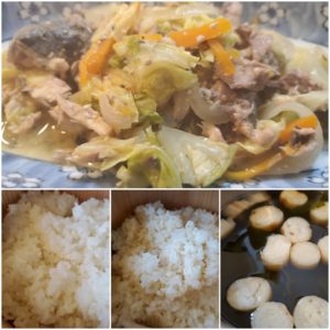 ☆鯖と野菜の蒸し煮☆玄米入りご飯/白米☆わかめとお麩の澄まし汁
