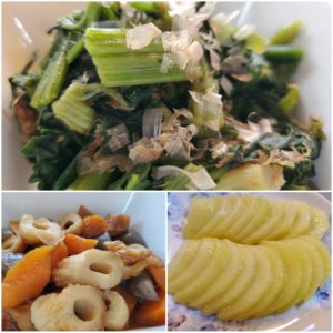 ☆ちぢみほうれん草のお浸し☆竹輪の煮物☆キウイフルーツ