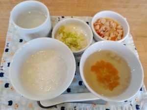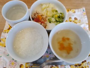 【後期】☆5倍粥☆野菜スープ☆チキンのトマト煮☆蒸かしじゃが芋春キャベツのフレンチサラダ