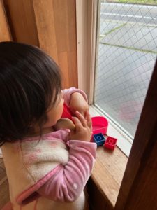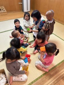 0歳児さん達は「ちょーだい」「どうぞ」のやり取りを楽しんでいます🤭
