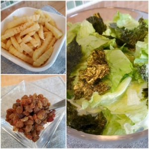 ☆レタスのりサラダ☆ポテトフライ☆レーズン
