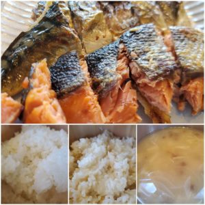 ☆焼き魚(鮭・鯖)☆玄米入りご飯/白米☆きのこの味噌汁