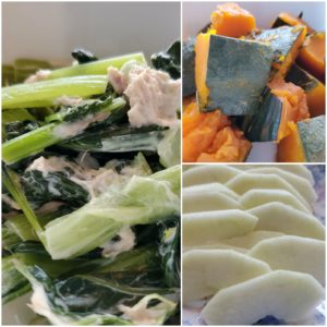 ☆小松菜とツナの和え物☆南瓜の煮物☆りんご
