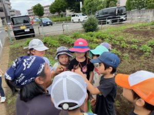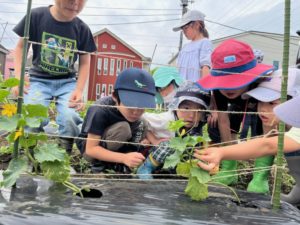 次はさつま芋の苗を植えるよ!「わー、紫色してる」