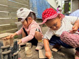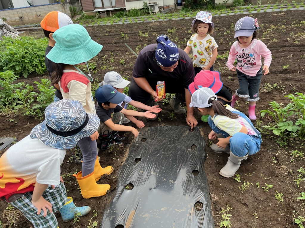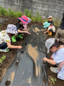 4.5歳児の大きい子達は畑に出てトウモロコシの種まきとさつま芋の苗を植えました🌽🍠