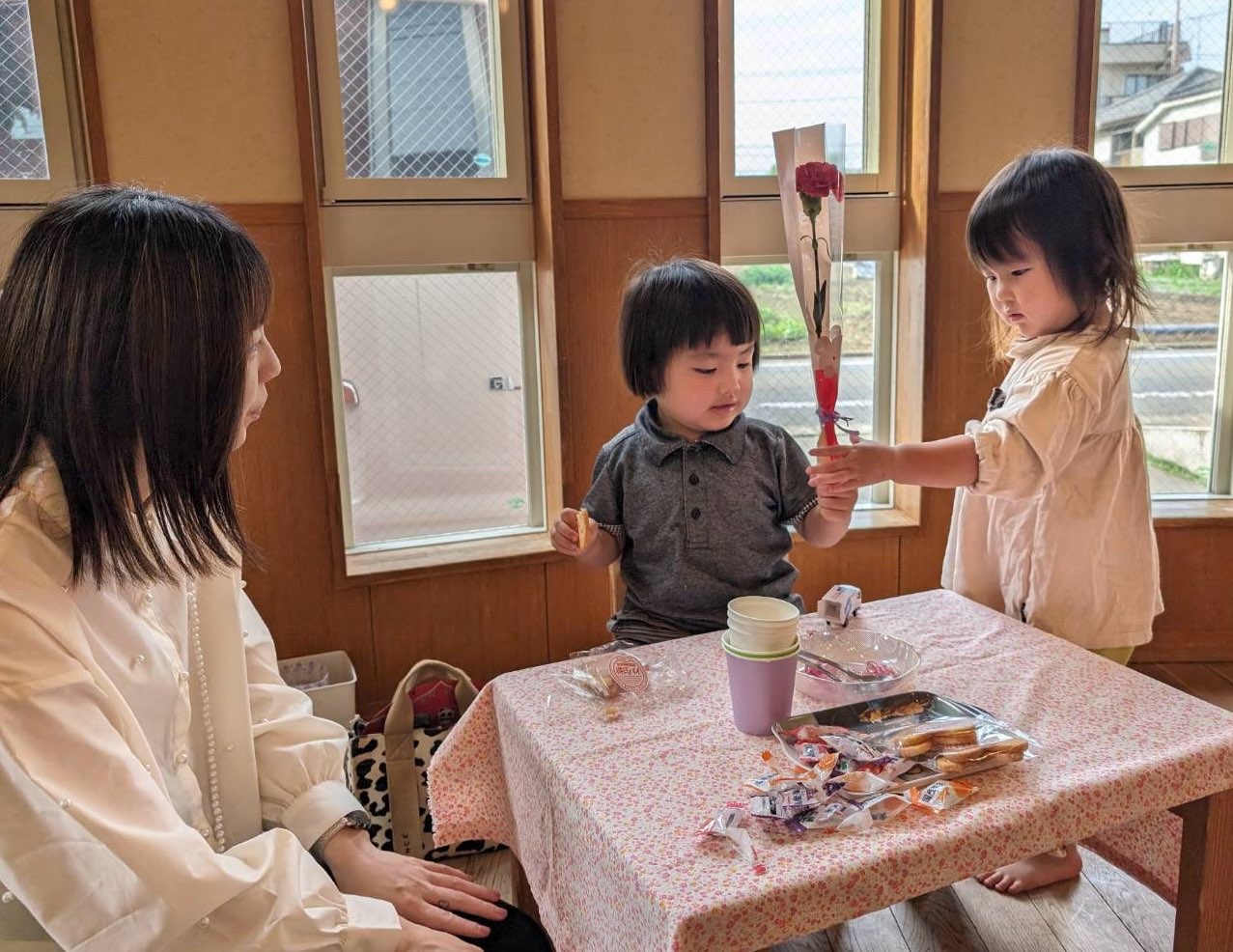 大好きな赤い色のお花をお友達からプレゼントしてもらったよ!