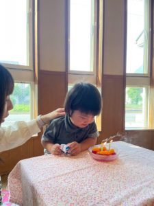 諦めないで全てのロウソクを吹き消せたね!そのたくましい気持ちで素敵な3歳を過ごしてね!