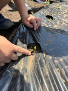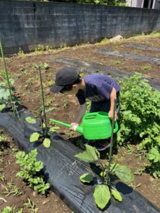 お庭に出た後は畑のお手入れをしました♪