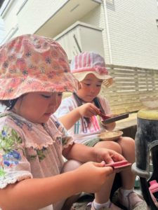 日中は日差しも強く暑くなりましたね💦みんなの体調と相談してお庭で過ごしました。