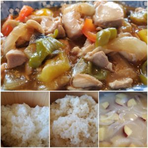 ☆鶏肉とパプリカの甘酢炒め☆玄米入りご飯/白米☆さつま芋の味噌汁