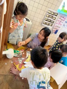 みんなで分担しながら着々と完成へと作業を進めていく子ども達です。