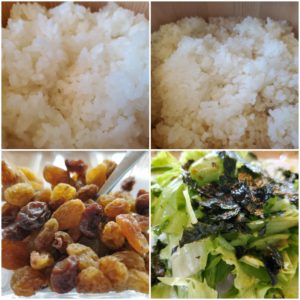 ☆玄米入りご飯/白米☆レタスのりサラダ☆レーズン