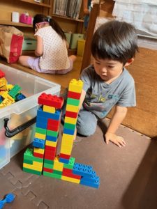2歳児の男の子は次から次へと好きな乗り物を作り上げていました👍