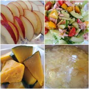 ☆レタスとツナのサラダ☆豆腐と春雨のスープ☆蒸かし南瓜☆りんご
