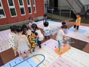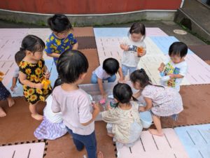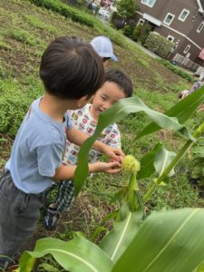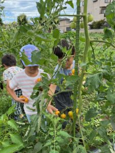 お魚料理ができるまでは水遊びをしたり大きい子達は畑の様子を見に行きました♪
