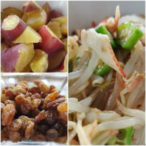 ☆オクラともやしの和え物☆さつま芋の甘煮☆レーズン