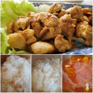 ☆タンドリーチキン☆玄米入りご飯/白米☆玉葱とトマトのスープ