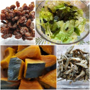 ☆レタスのりサラダ☆蒸かし南瓜☆小魚☆レーズン