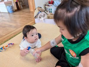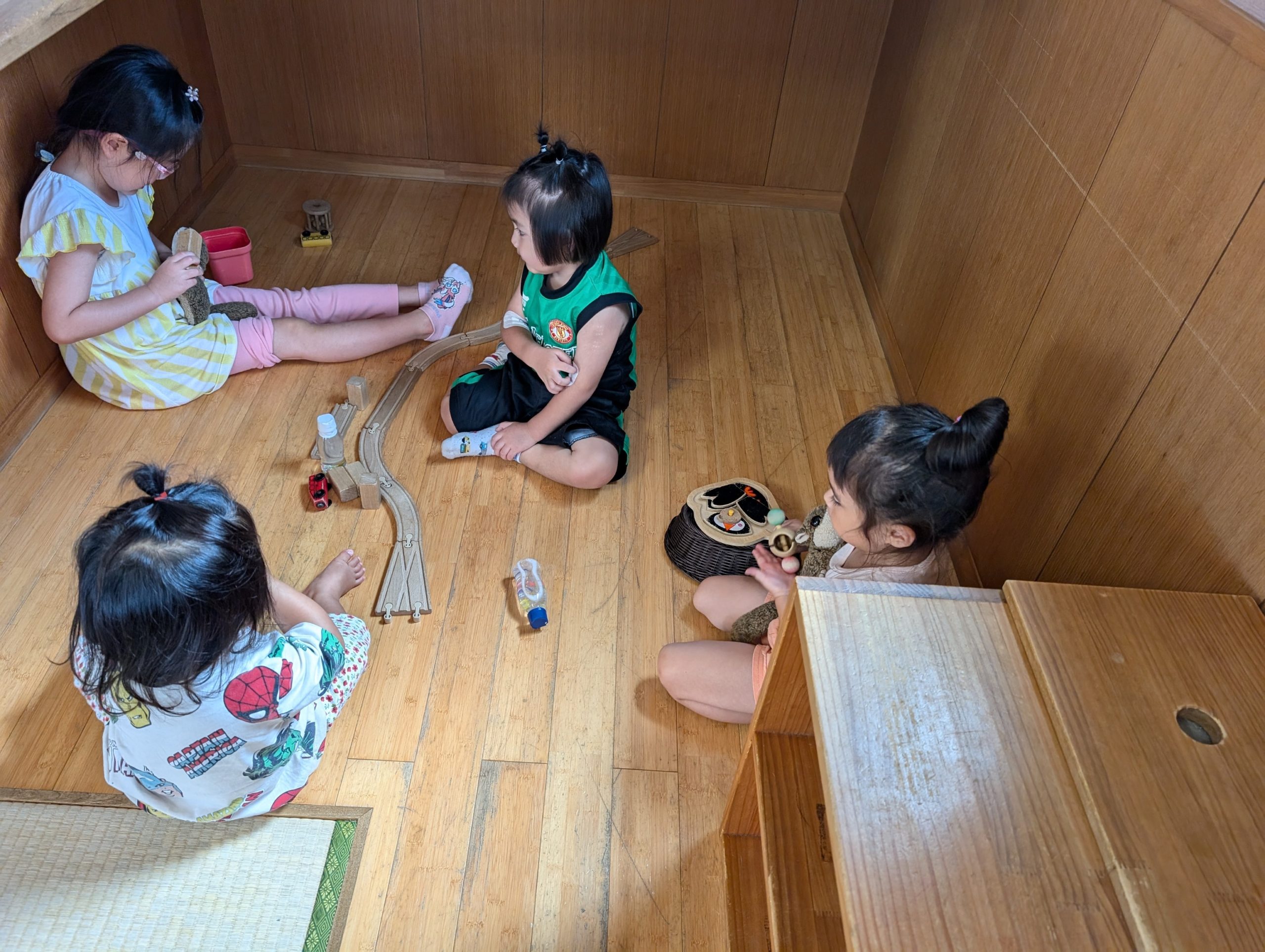 小さい子におもちゃを貸してあげたり大きい子達も小さい子達もみんな一緒に楽しんでいましたよ~!!