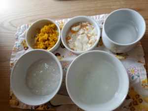 【中期】☆7倍粥☆だし汁☆豆腐と根菜のあんかけ☆南瓜のマッシュ
