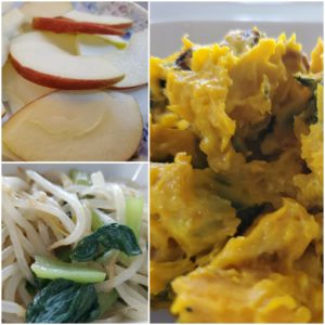 ☆南瓜サラダ☆小松菜ともやしの和え物☆りんご