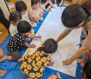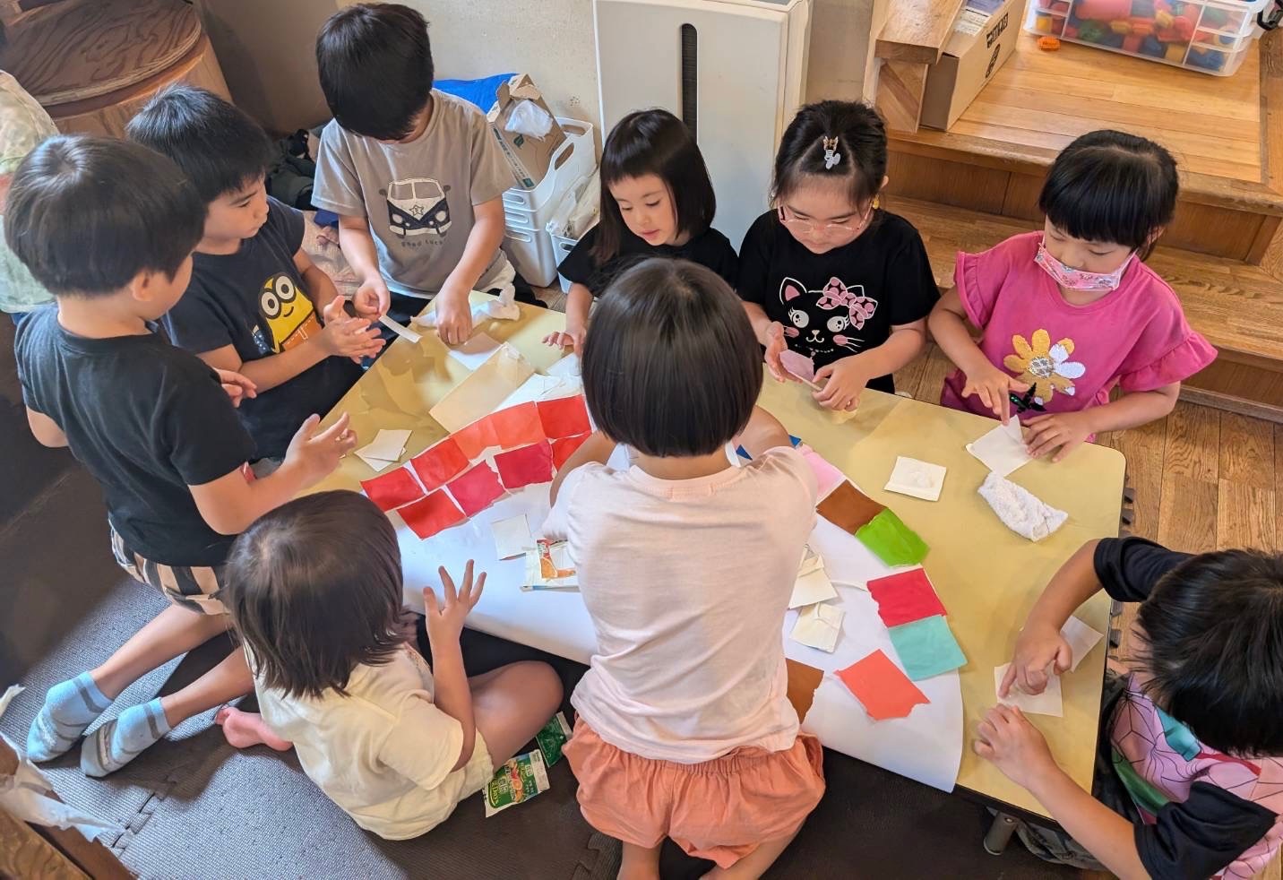 今週は4.5歳児の子ども達と〝平和〟について話し合いをしてきました。自分が思った事、感じた事を沢山話してくれました。そして、その事を小さい子達も大人もみんなで考え合い沢山の人に伝えられるように、みんなで準備を始めています。来週のミニ展示会で見てもらえるように進めていますのでもうしばらくお待ちください!