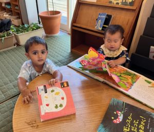 好きな絵本を手に取り読んでもらったり自分でページをめくってみたりしていました。