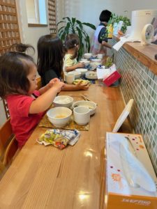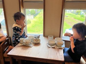 カウンター席を選ぶことが多くなった2歳児の子ども達。大きい子への憧れが大きくなっています✨