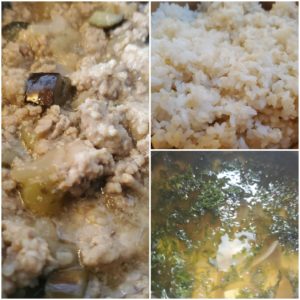 ☆茄子と豚挽き肉の甘みそ丼☆あおさの澄まし汁