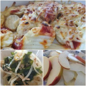 ☆じゃが芋のチーズ焼き☆わかめともやしの和え物☆りんご