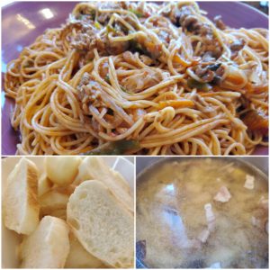 ☆ナポリタンスパゲティー☆白パン☆きのこのスープ