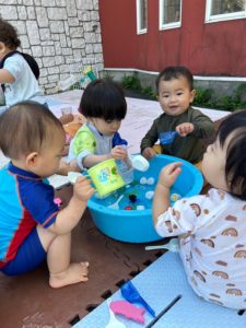 小さい子達はちょっぴり水遊びを楽しみました♪