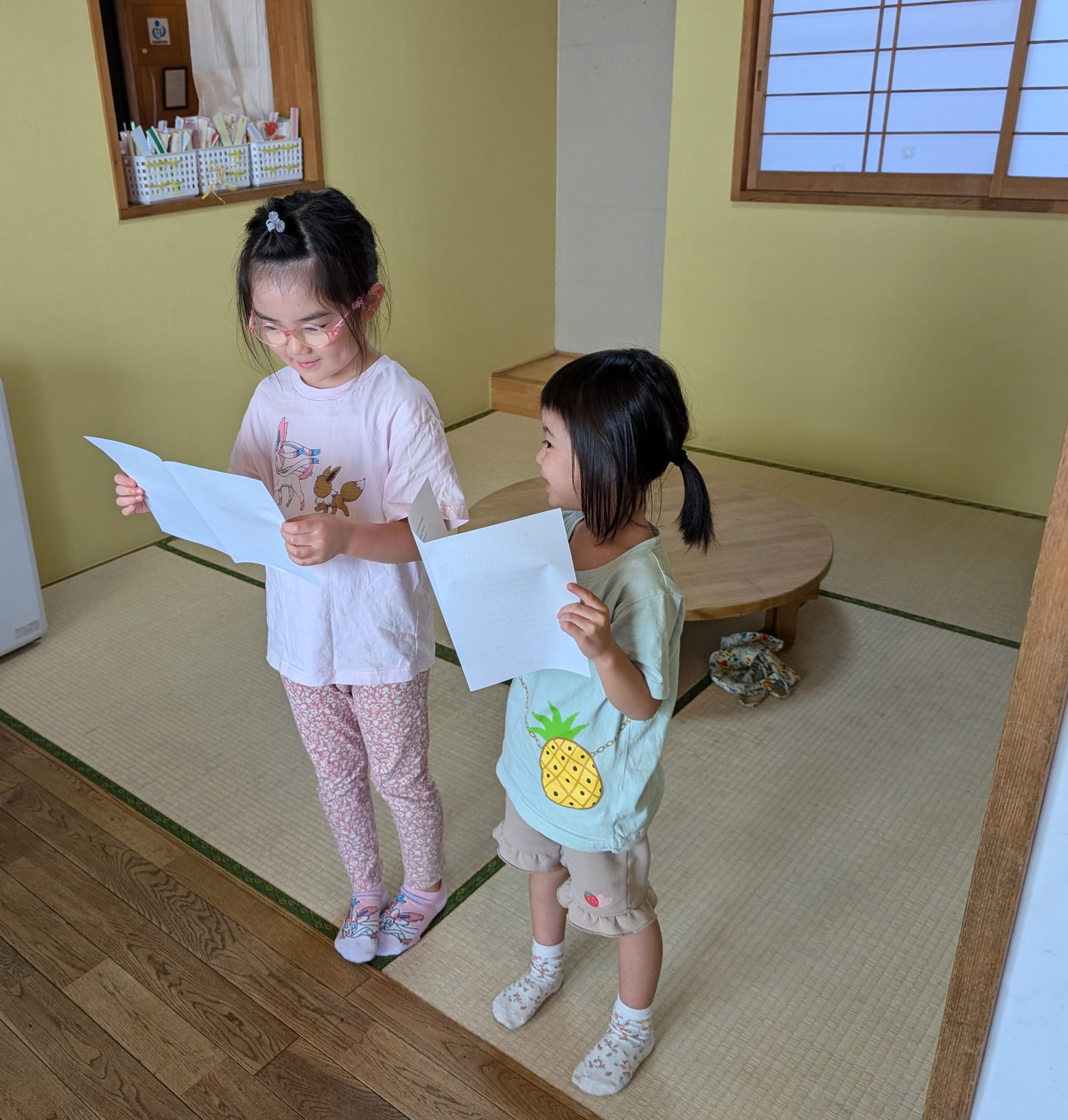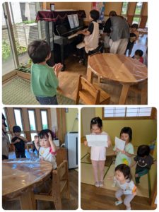 今回は〖にじ〗を歌うことに・・・😊聞いたことがある曲だったようですぐに覚えて歌っていました♪そして、優しい歌声に引き寄せられるように自然と子ども達が集まってきました♬