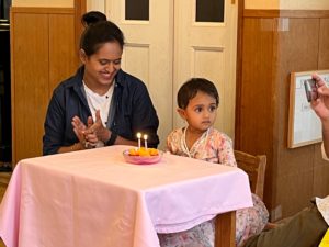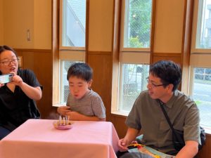 今日はおやつの時間にお誕生日会をしました♪年長さんのお兄ちゃんと2歳になった女の子が主役でした😊