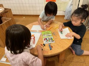 こちらは新幹線や花火、かわいいプリンセスなど自分の好きな絵を描いて楽しんでいました♪
