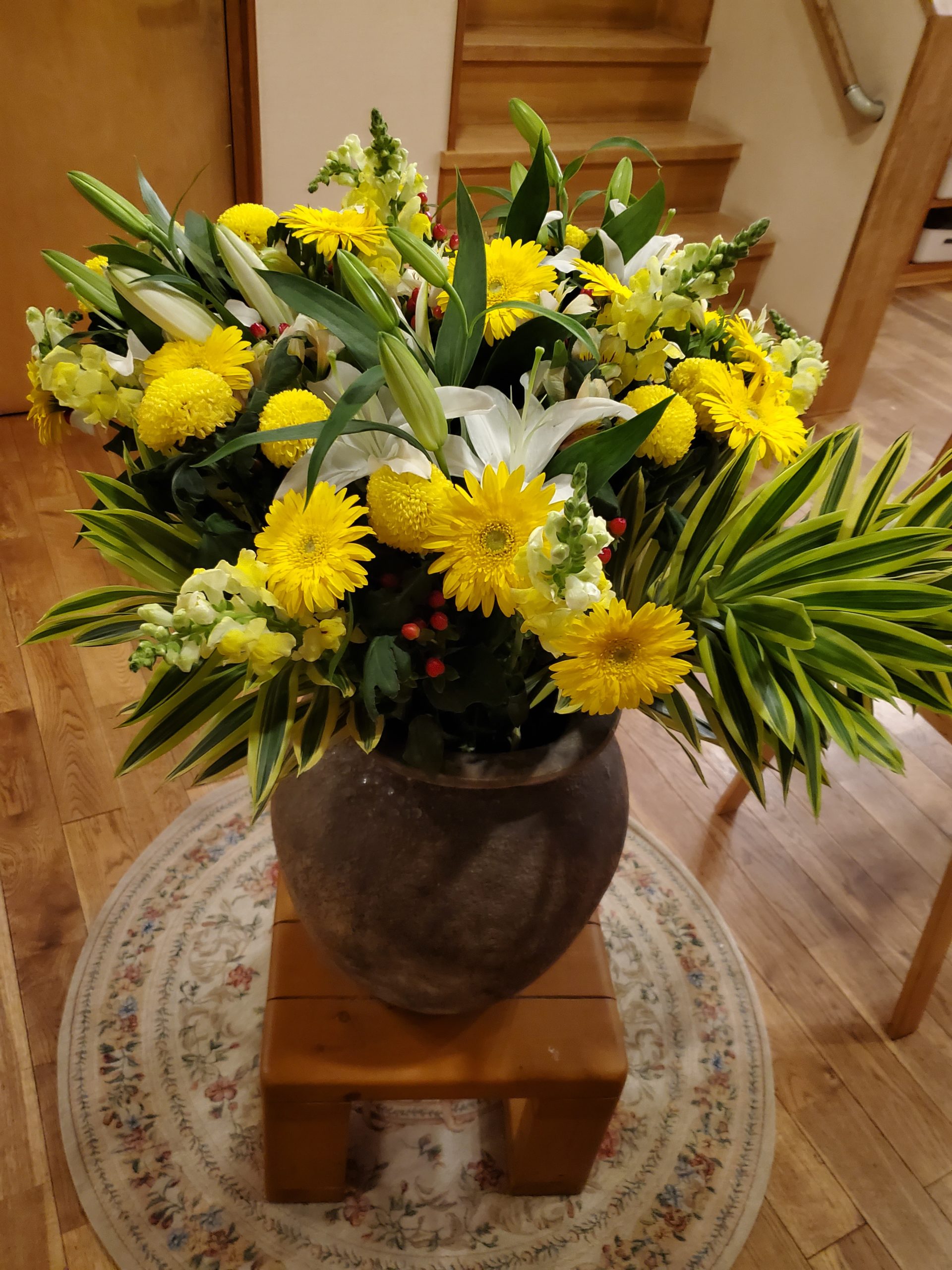 毎週火曜日にお花屋さんからどんぐりの玄関にお花が届きます。