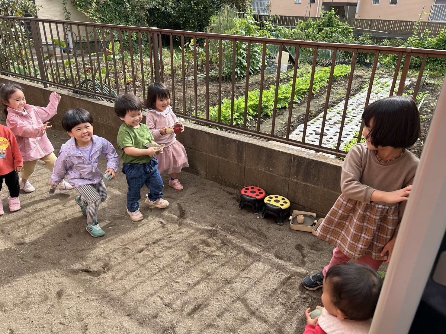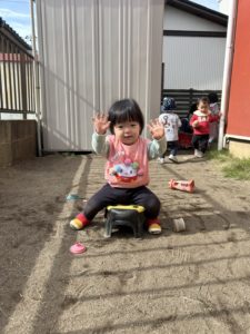 今日はいいお天気だったのでお庭で遊びました😊だるまさんがころんだをして楽しんでいた子ども達です!!