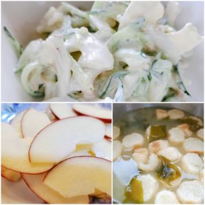 ☆蓮根サラダ☆お麩とわかめの味噌汁☆りんご