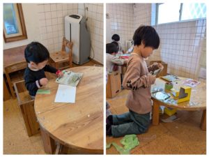 今日は内科健診がありました。先生に診てもらった後はのんびりお部屋で過ごしました♪アトリエ室ではハロウィンが近いということでかわいいおばけを描いたり、こま作りをしていました♬お部屋の中でおままごとやブロック、カルタ…とじっくりと楽しんでいた子ども達です😊