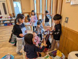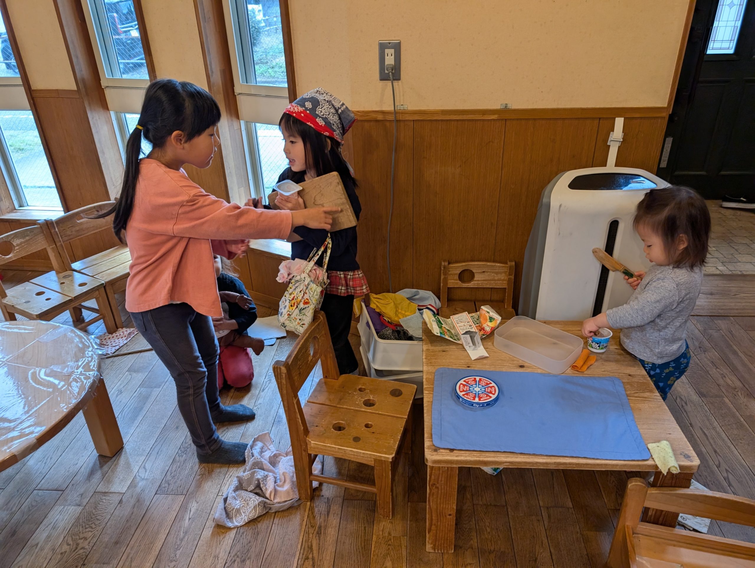 子ども達がみんなで盛り上がっていたのは〝どんぐりの家〟ごっこです😊小さい子から大きい子までみんなで楽しんでいました👏そんな所もどんぐりの家らしいですね…😊