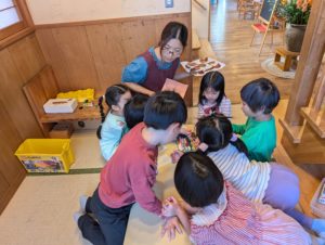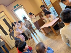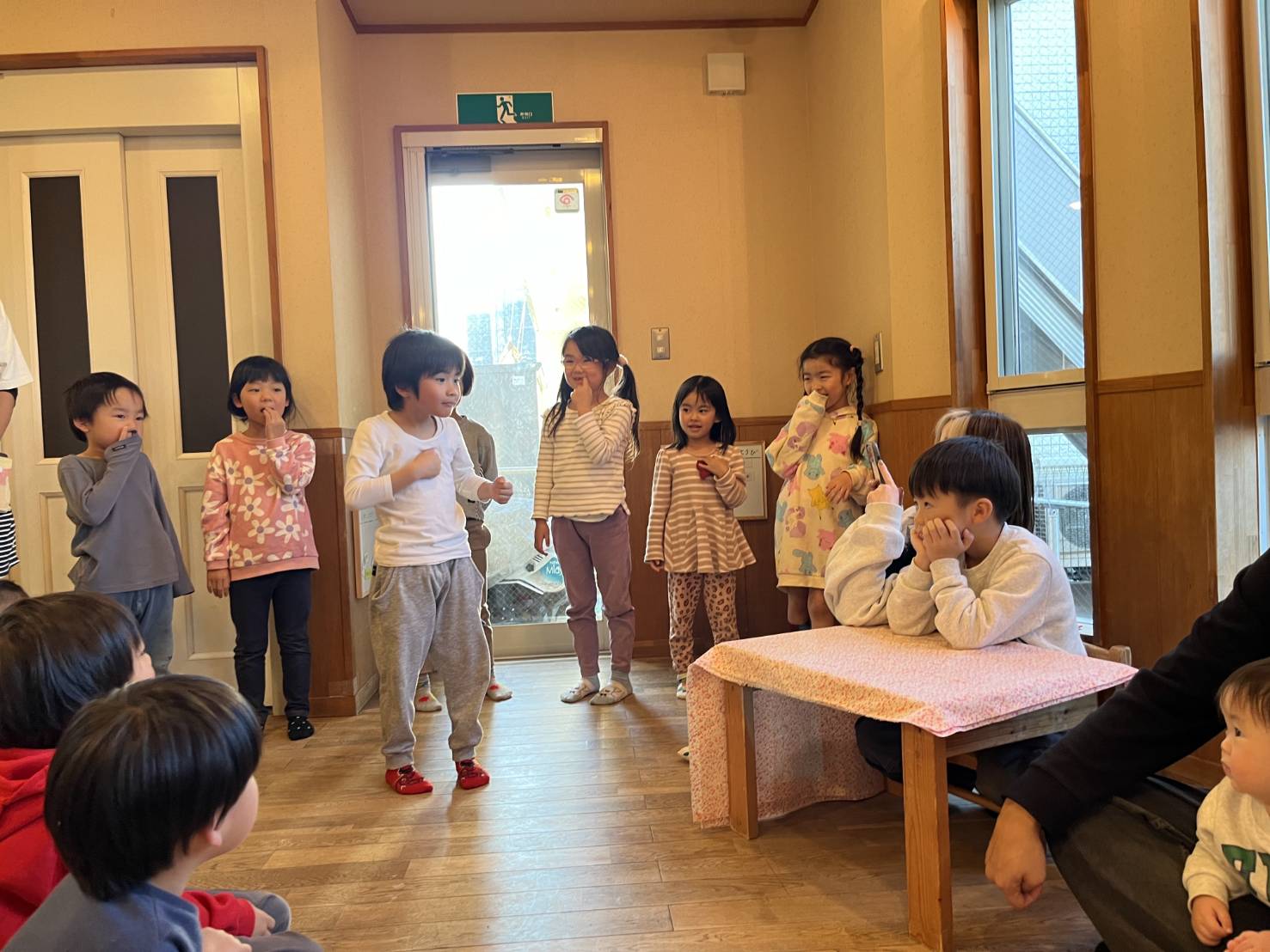 まずはジェスチャーゲームで楽しみました😊年長さんと年中さんが動物になりきって問題を出してくれました♪