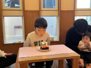 今日は年長さんの男の子のお誕生日会をしました♪どんぐりで最後のお誕生日会!!